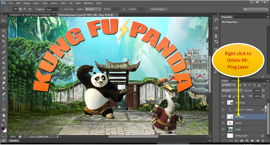 We must arrange the layers in order to make other layers appear. Move this newly added layer just below Panda layer. To move the layers down, just click on the top layer and hold it and then drag it down. Below is the new image after moving it down.