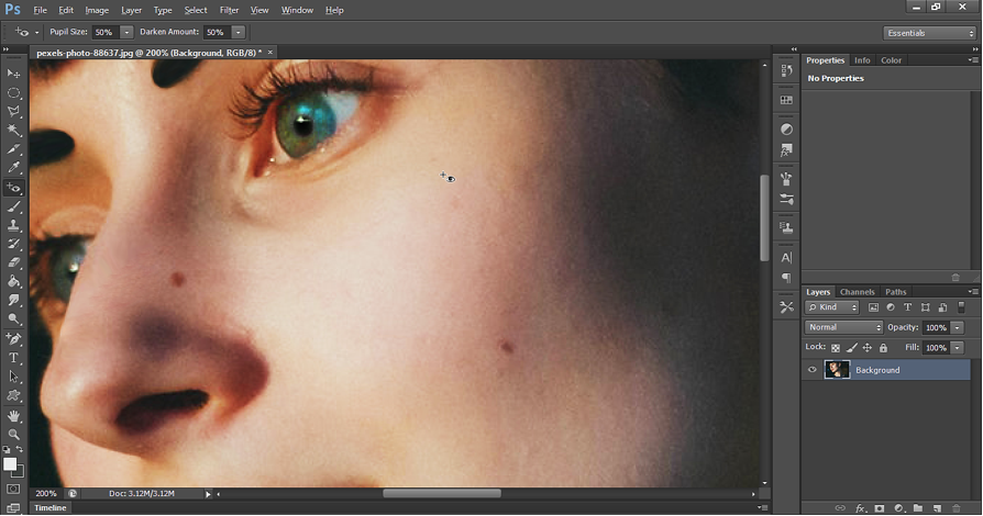 Let’s open the image in Photoshop application. As we can see, there is Red eye problem in below pic. We can correct this using Red eye tool.
