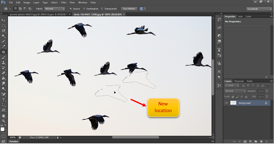 In below image, we make selection of a bird with Source option enabled in Patch tool.