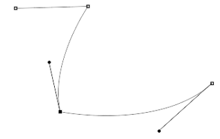 Suppose we have drawn straight line and then 1 curve as shown below. To draw another curve in continuation, first we delete 2nd direction handle of point 3 i.e. we delete ‘B’.