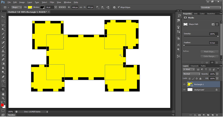 Let’s draw the shape on the canvas. Drag the cursor in rectangular shape and it creates a shape as shown below. Here we have set the stoke to 16 point.